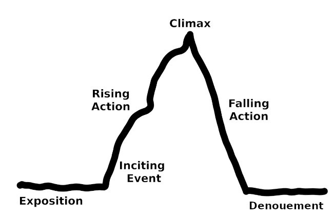 Developed by the German novelist Gustav Freytag in the 19th century, this form of structure has become immensely popular. It is a widely taught form used by many creative writers. It comprises five parts: exposition, rising action, climax, falling action, and denouement.